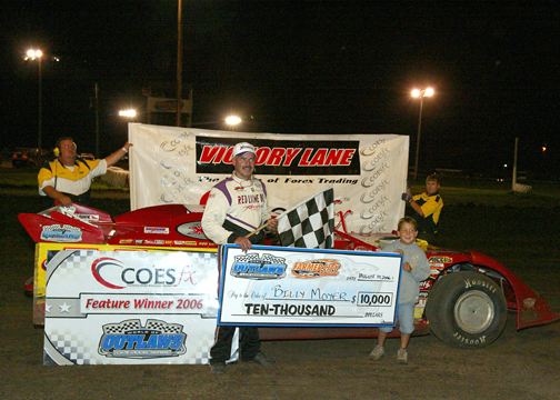 Billy Moyer in victory lane after winning the Farmer City (IL) Raceway World of Outlaws event -