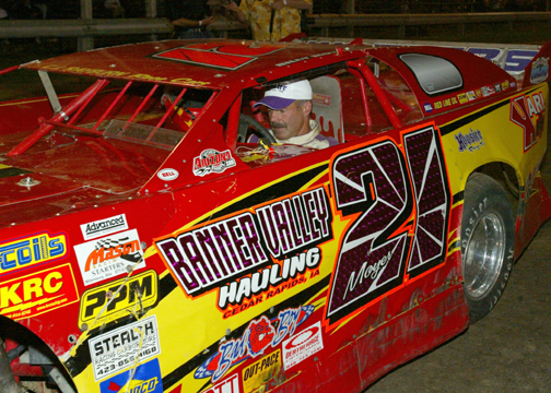 Billy Moyer in victory lane after winning the Farmer City (IL) Raceway World of Outlaws event -