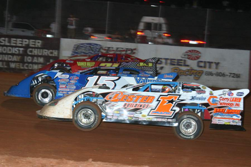 Billy races three-wide at the I-44 (MO) Speedway on July 3, 2007 - Ron Mitchell Photo