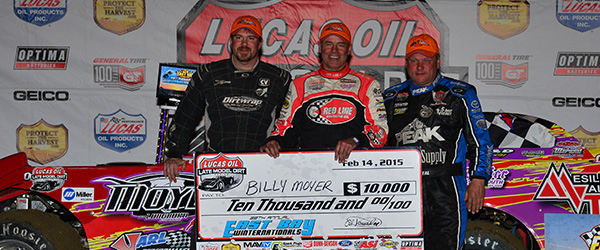 Billy Moyer in victory lane during the 'Winternationals' at East Bay (FL) Raceway Park in 2015 -