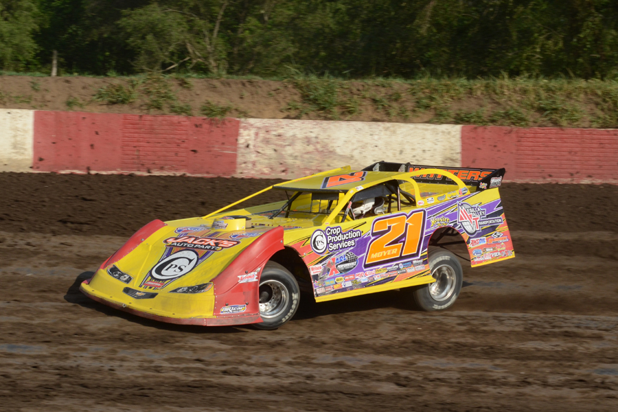Billy Moyer mashes the loud pedal during the Summer Nationals stop at Peoria (IL) Speedway - Todd Healy Photo