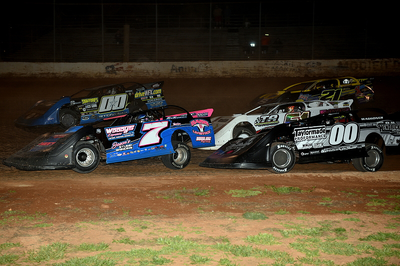 Billy Moyer races hard at Legit (MO) Speedway Park on April 28, 2018 -